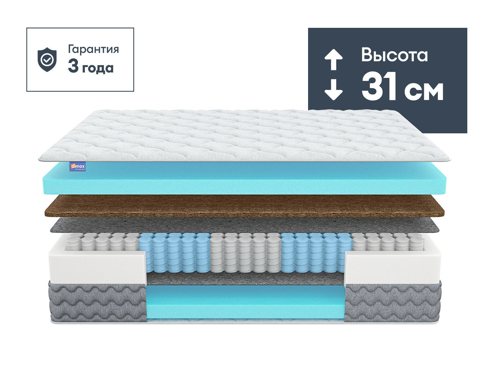 Матрас Димакс Биг Лайт Хард — это высокотехнологичная модель с двусторонней жёсткостью, которая оптимальна для тех, кто ценит устойчивую и надёжную поддержку во время сна. Матрас базируется на 5-зональном пружинном блоке, что позволяет ему лучше распределять нагрузку и аккуратнее поддерживать тело.