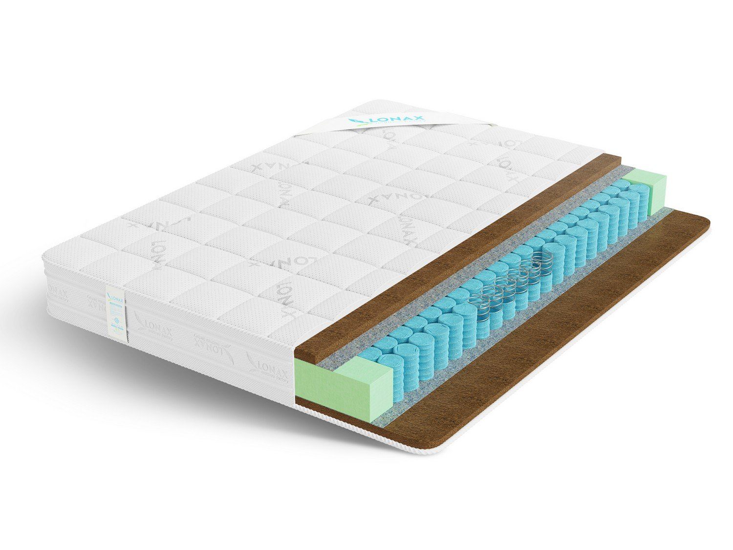 Высокую жесткость, матрасу обеспечивает натуральная кокосовая койра — растительное волокно кокосовой пальмы. Этот материал обладает выраженными ортопедическими свойствами, он очень прочный и износоустойчив, а не впитывает влагу.