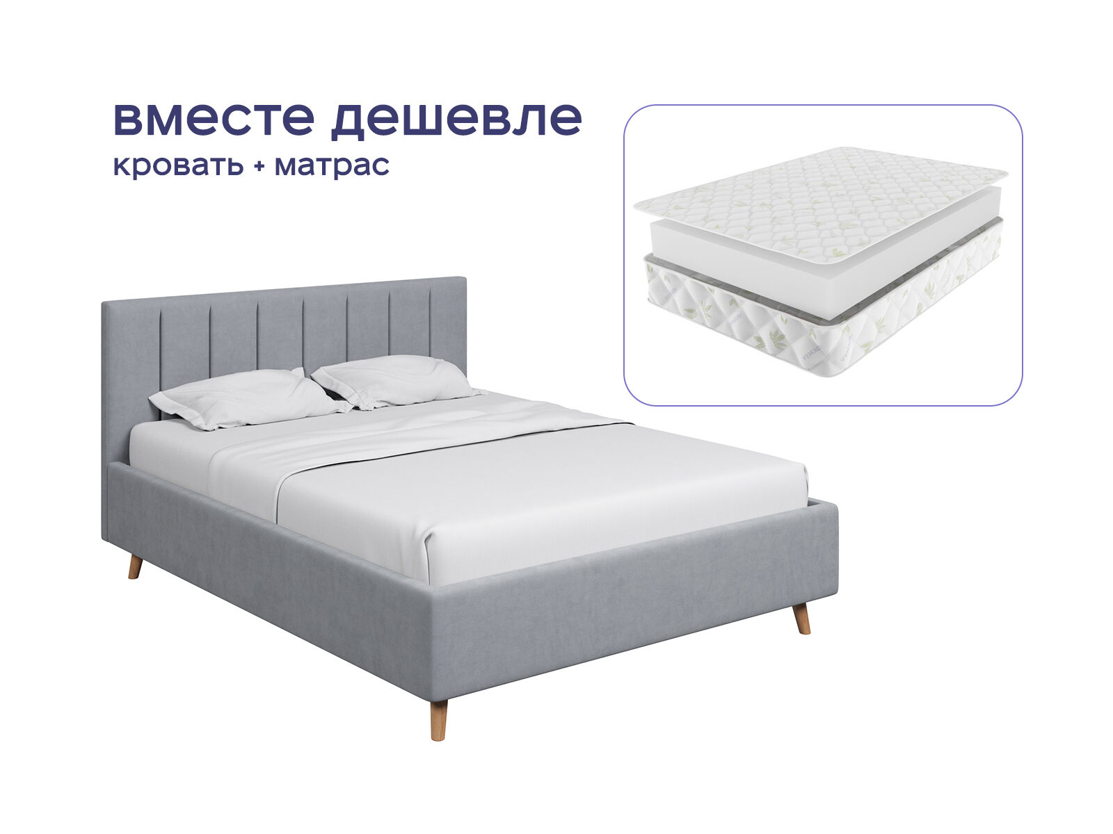 Комплект Амадора + Мистер Слип Mono Line Стэнди — это симбиоз современного стиля и безупречного комфорта для вашей спальни. Кровать с изящными наклонными ножками не только добавляет изысканности интерьеру, но и обеспечивает практичность. А матрас-моноблок, подстраиваясь под анатомию тела, сохраняет правильное положение позвоночника. Приобретая набор, вы экономите до 36%. Превратите спальню в пространство, где эргономика, эстетика и здоровый сон сочетаются без компромиссов.