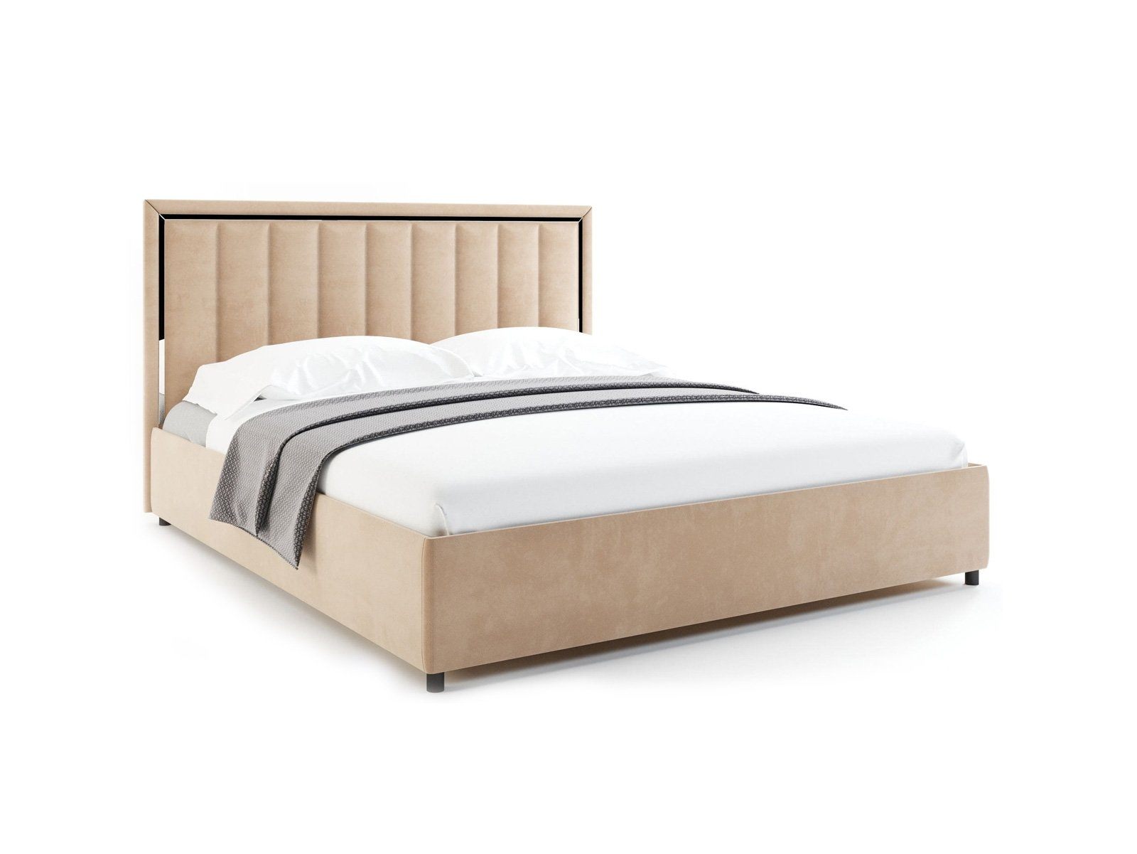 Вивальди — изящная кровать в современном стиле. Изюминка модели — высокое мягкое изголовье с вертикальными стяжками и зеркальной вставкой по периметру, которая создает яркие блики на свету.
