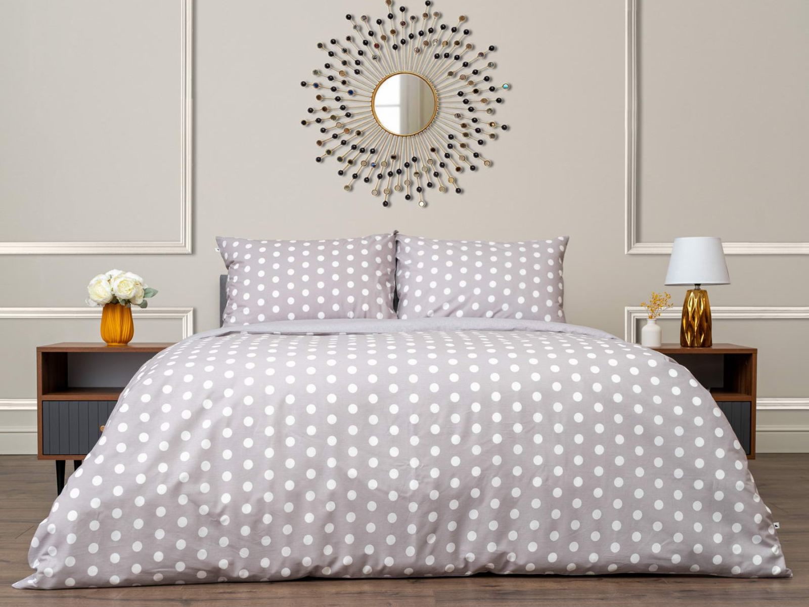 Комплект Мэгги легко стирается в обычной машине в бережном режиме и также легко гладится.