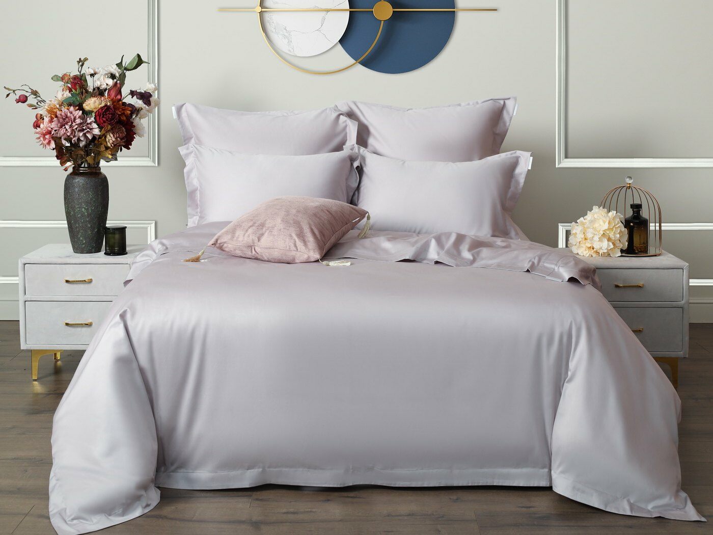 Натуральный состав из 100%-го хлопка обеспечивает гипоаллергенные свойства материала, он охлаждает в жаркую погоду и согревает в холодное время года. Мако-сатин плотностью 300ТС- является тканью класса люкс.