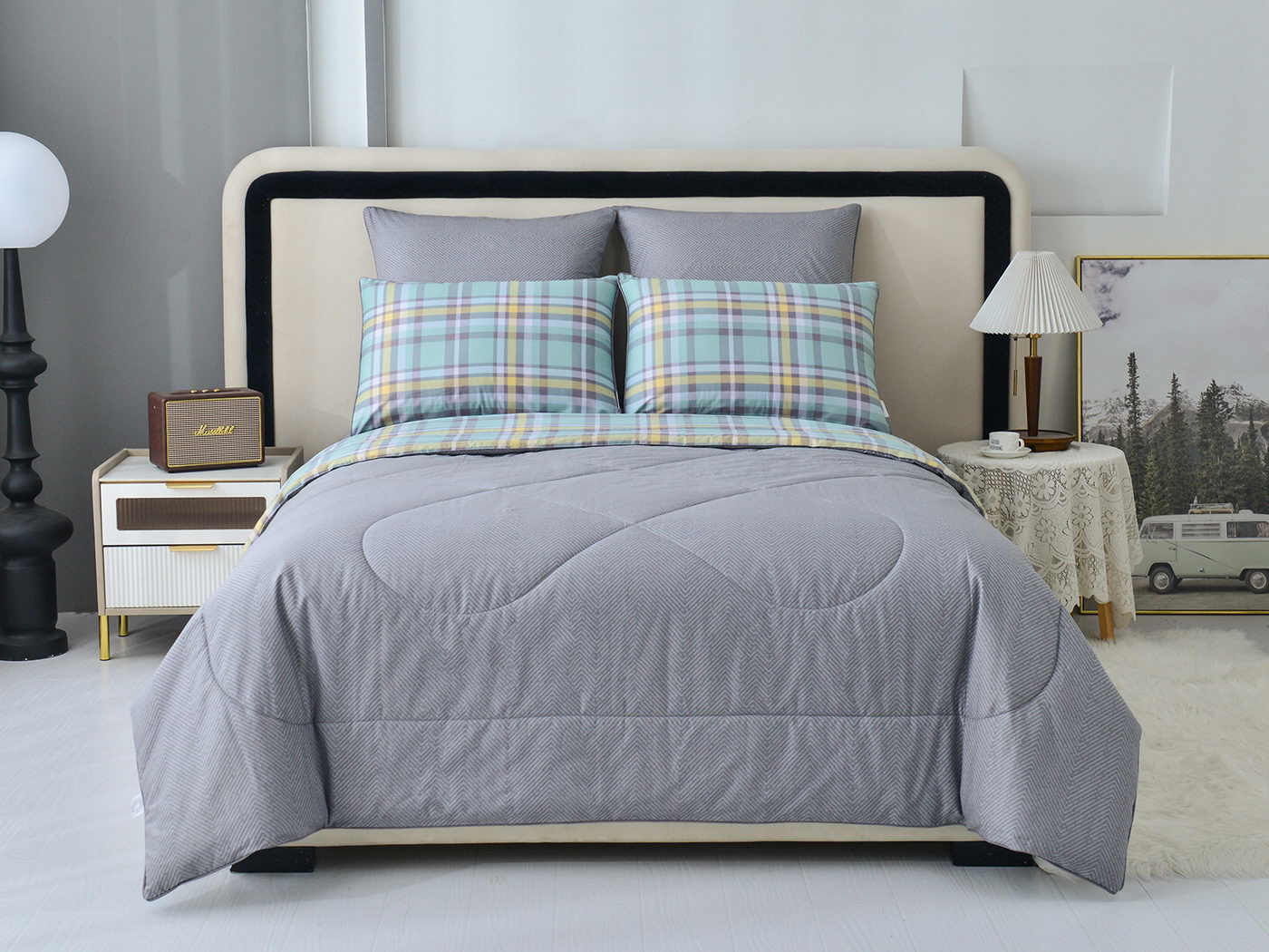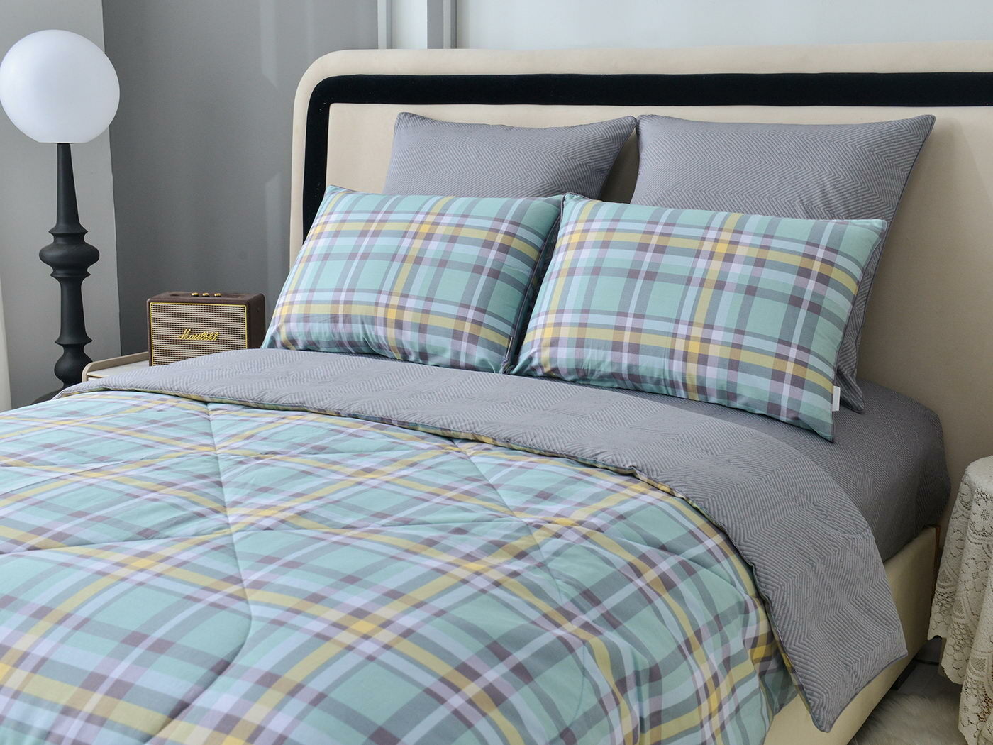 Особенность: двусторонняя модель, наволочки и одеяла декорированы кантом.