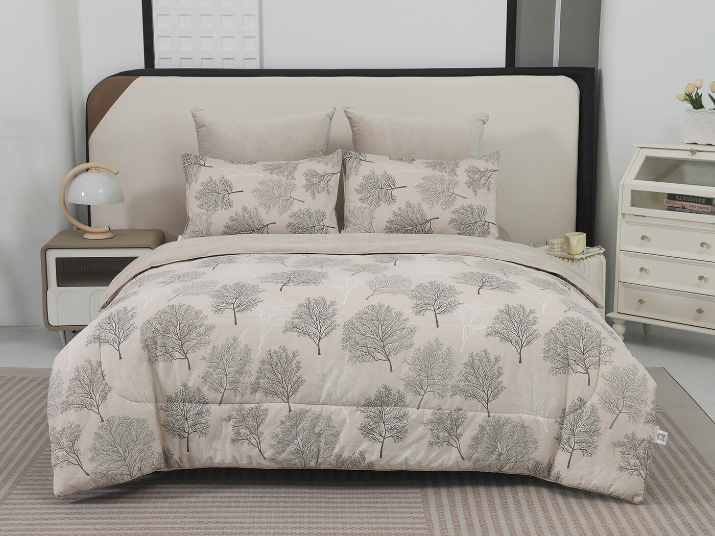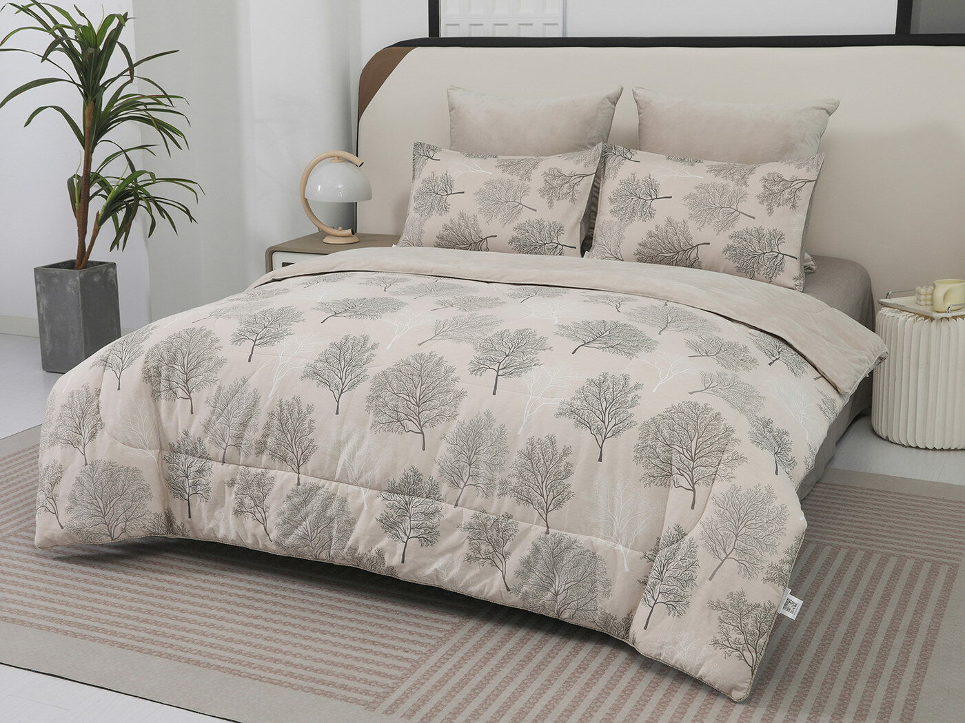 Обратная сторона одеяла – принтованный сатин натуральный хлопковый материал. На ощупь нежная и шелковистая, при этом комфортная и прочная ткань.