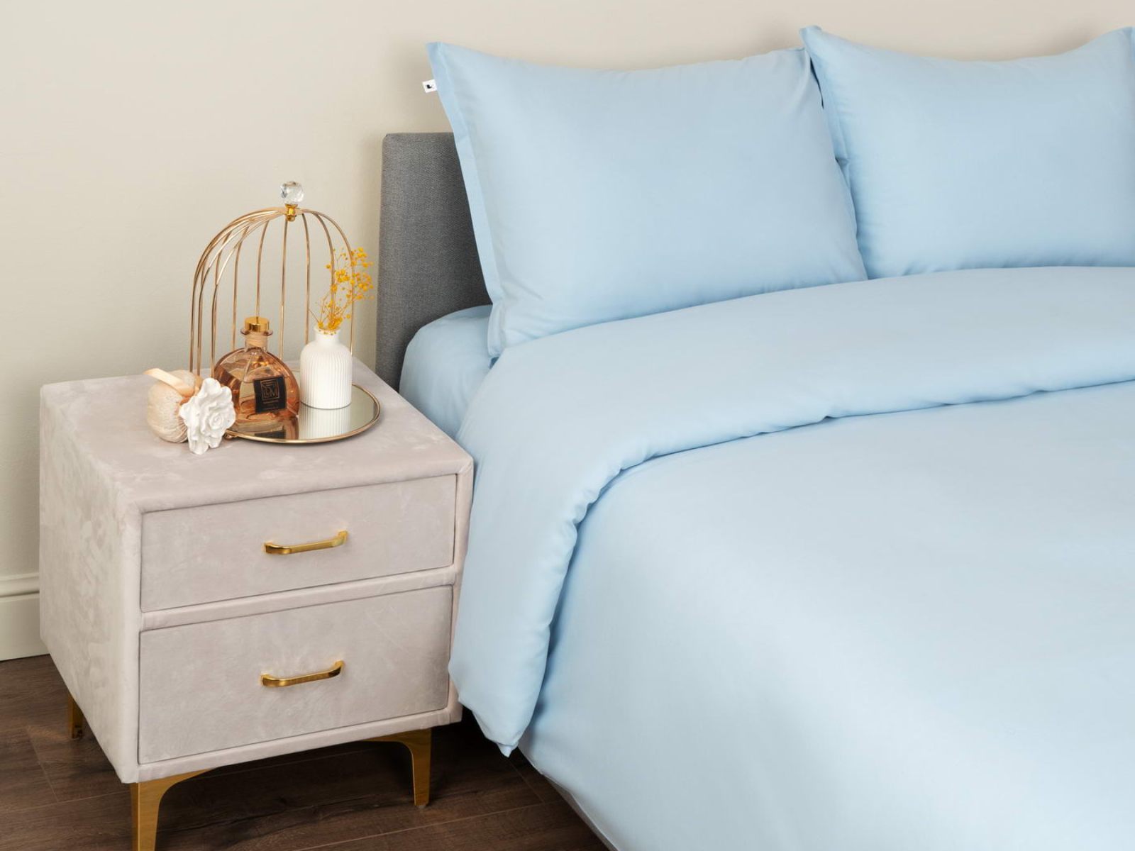 Комплект изготовлен из ранфорса, такая ткань отвечает всем современным стандартам и по уровню комфорта не уступает сатину. Ранфорс долговечен, лёгок и приятен на ощупь. Комплект Сэнди легко стирается в обычной машине в бережном режиме и также легко гладится.