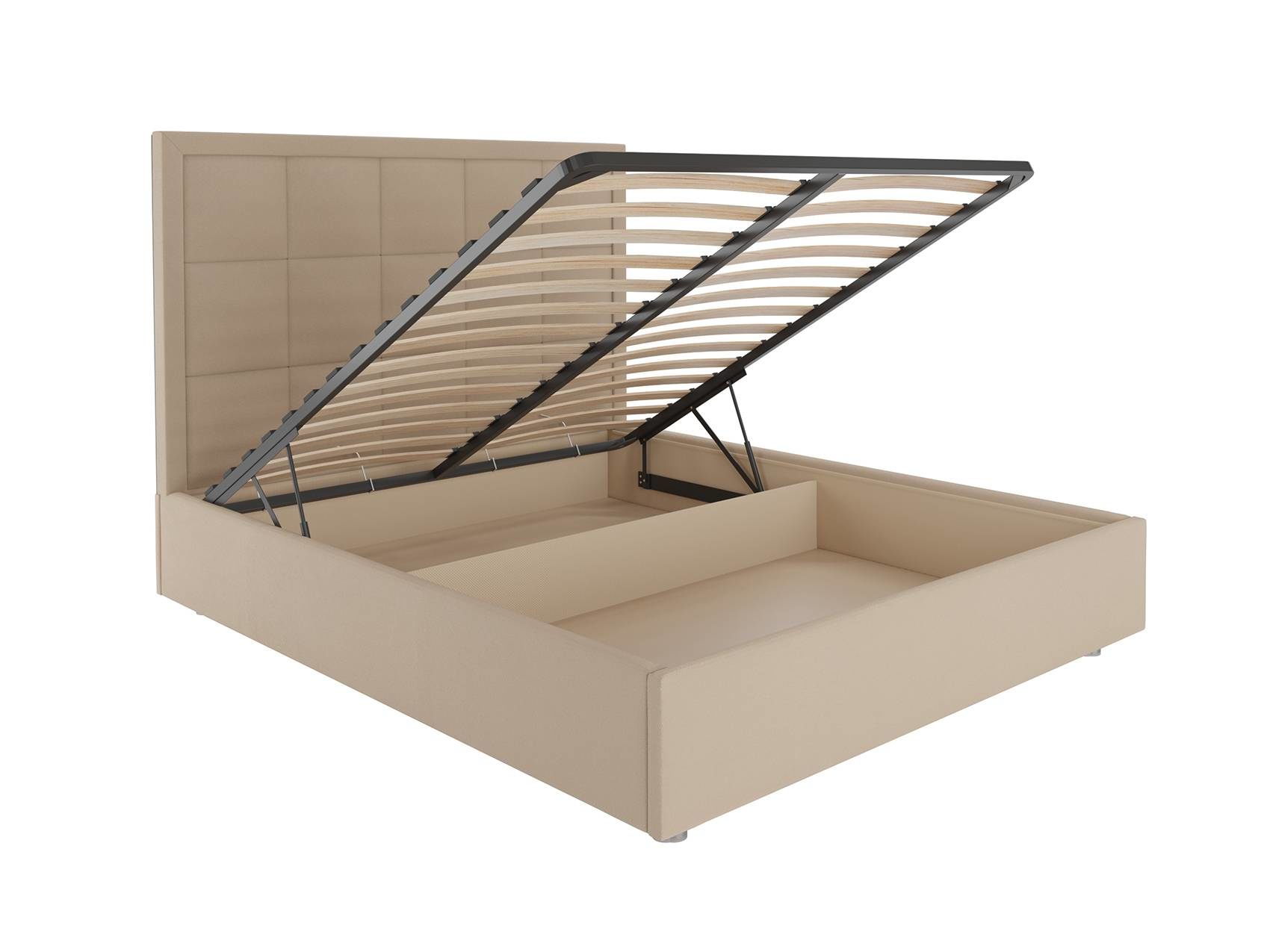 В комплектации с подъемным механизмом кровать имеет вместительный бельевой короб с двумя отделениями.