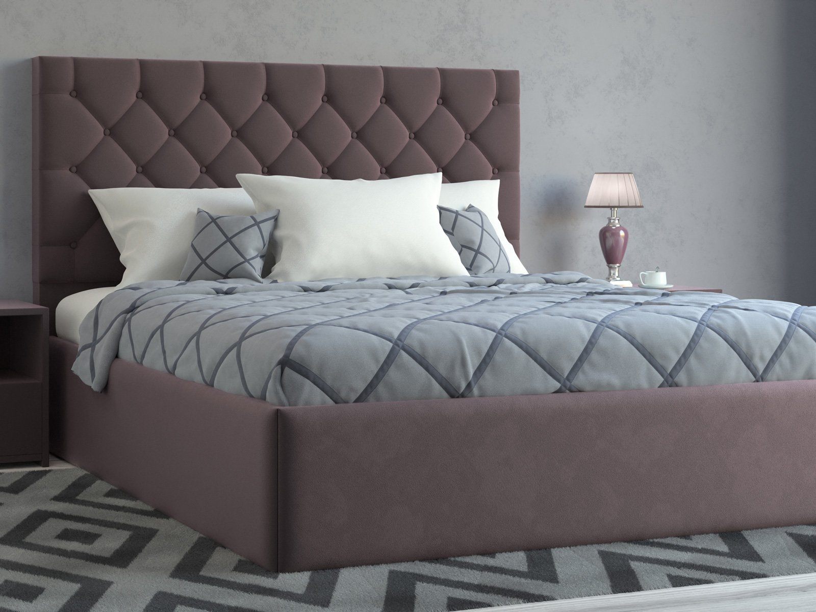 Мягкая кровать с обивкой из велюра.
