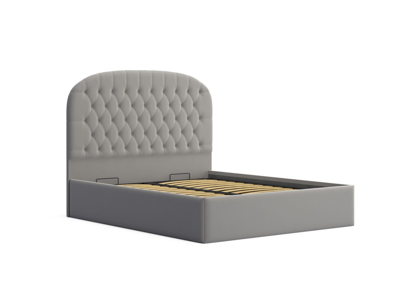Мягкая кровать с обивкой из велюра.