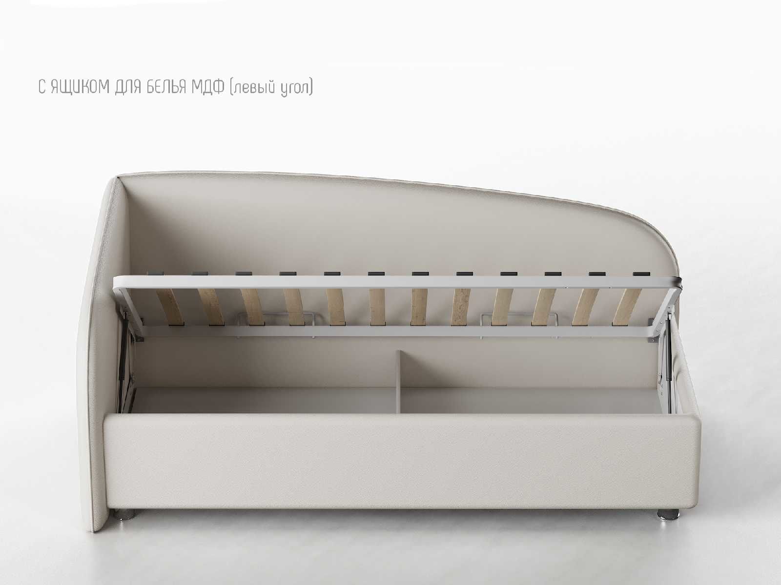 Кровать укомплектована IQ с подъемным механизмом и ящиком для белья без дна (дополнительная платная опция - дно к ящику IQ из HDF (ХДФ). Каркас кровати на цоколе, декоративный чехол на цоколе съёмный. Глубина ящика для белья - 30 см, без ограничения нагрузки на ящик.