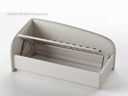 Одним движением руки Вы можете превратить кровать в диван! Закажите вместе с кроватью декоративный чехол на матрас к кровати Amelia из мебельной ткани (чехол приобретается отдельно, стоимость уточняйте у наших менеджеров), уберите постельное бельё в просторный ящик и вуаля — перед вами удобный и компактный угловой диван (особенно актуально для детских комнат или гостиных).