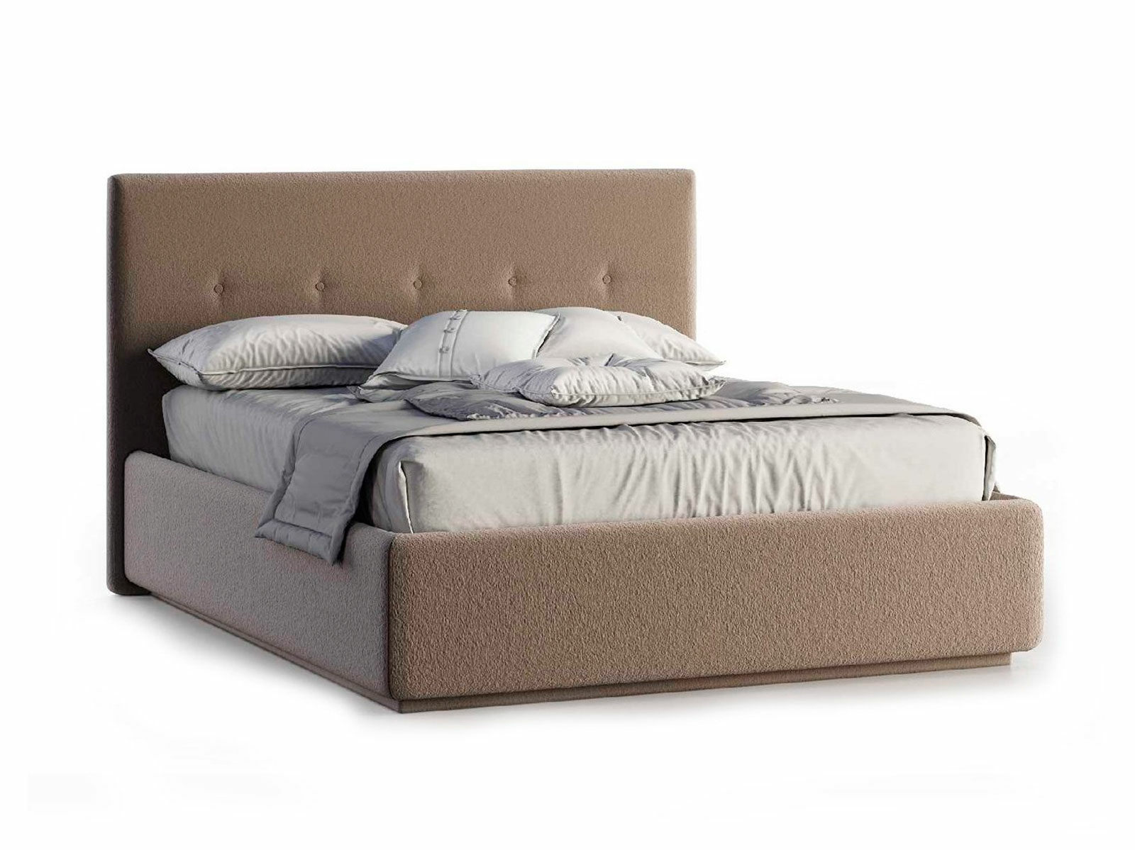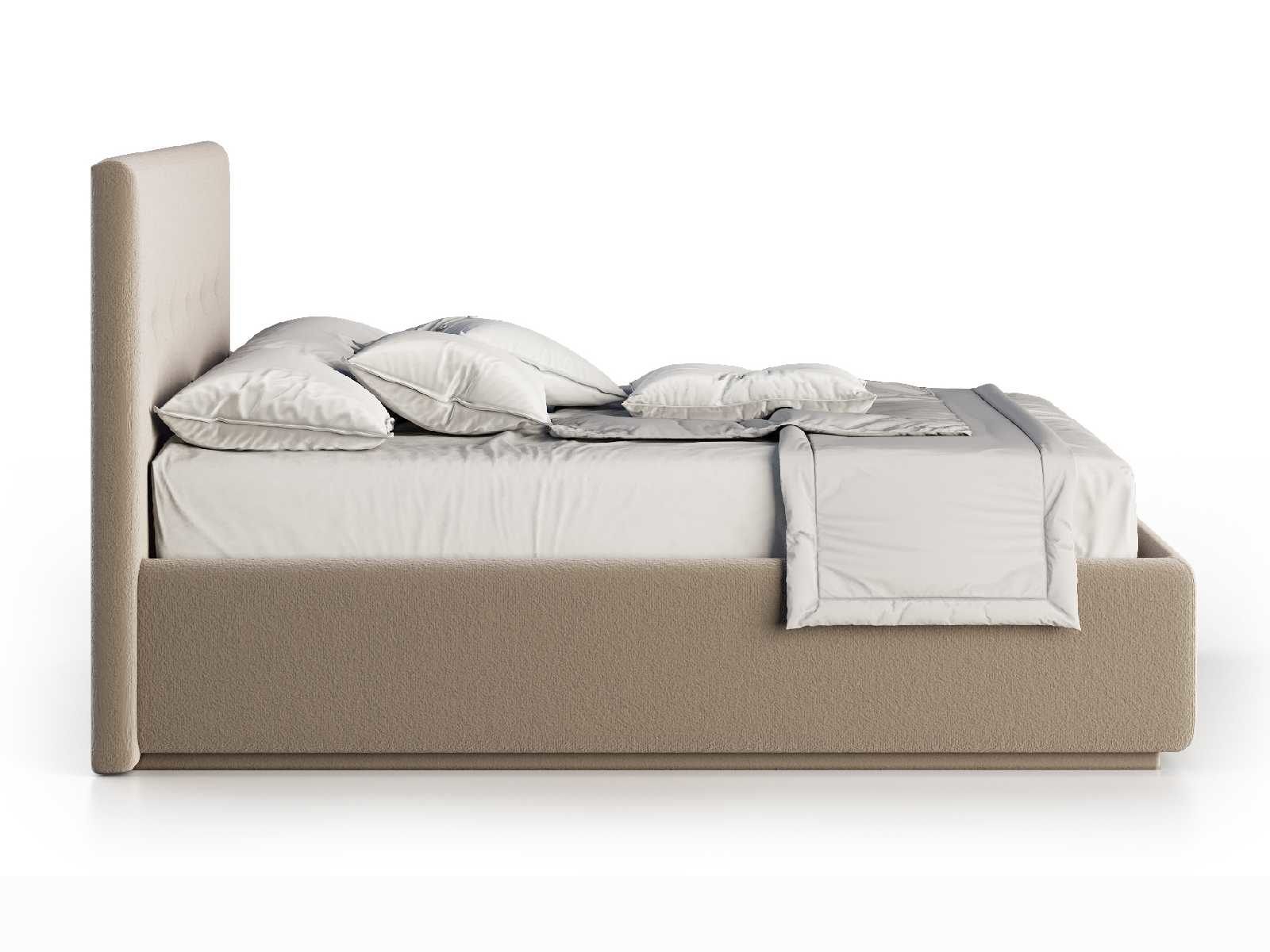 Кровать укомплектована IQ с подъемным механизмом и ящиком для белья без дна (дополнительная платная опция - дно к ящику IQ из HDF (ХДФ). Каркас кровати на цоколе, декоративный чехол на цоколе съёмный. Глубина ящика для белья - 30 см, без ограничения нагрузки на ящик.