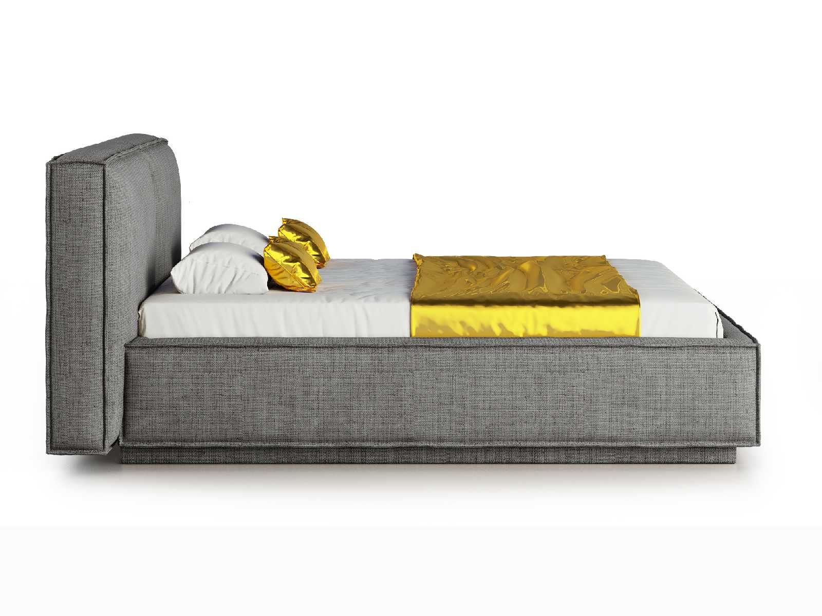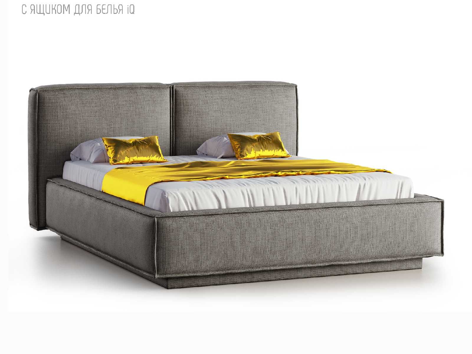 Кровать укомплектована IQ с подъемным механизмом и ящиком для белья без дна (дополнительная платная опция - дно к ящику IQ из HDF (ХДФ). Каркас кровати на цоколе, декоративный чехол на цоколе съёмный. Глубина ящика для белья - 30 см, без ограничения нагрузки на ящик.