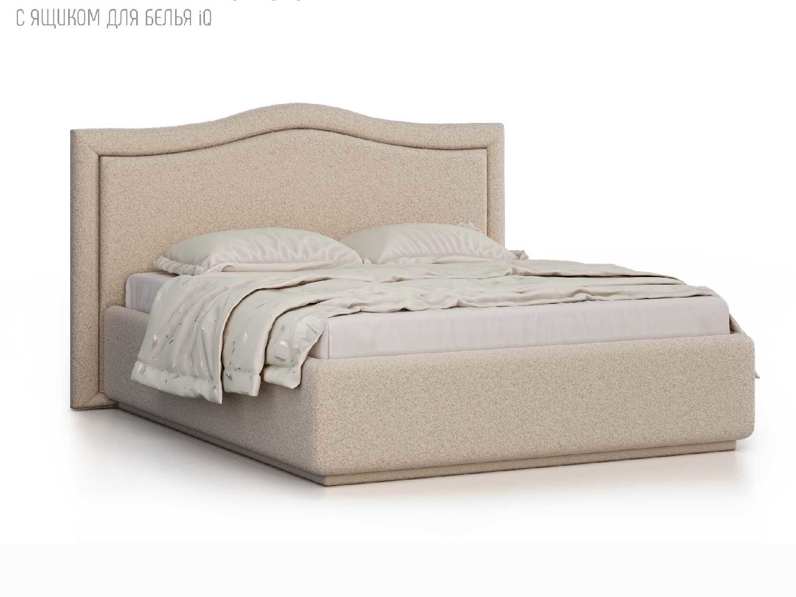 Кровать укомплектована IQ с подъемным механизмом и ящиком для белья без дна (дополнительная платная опция - дно к ящику IQ из HDF (ХДФ). Каркас кровати на цоколе, декоративный чехол на цоколе съёмный. Глубина ящика для белья - 30 см, без ограничения нагрузки на ящик.