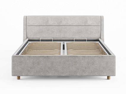 Кровать комплектуется металлическим основанием и подъемным механизмом со вместительным бельевым ящиком. Дно бельевого ящика легко сдвигается для обеспечения уборки под кроватью.