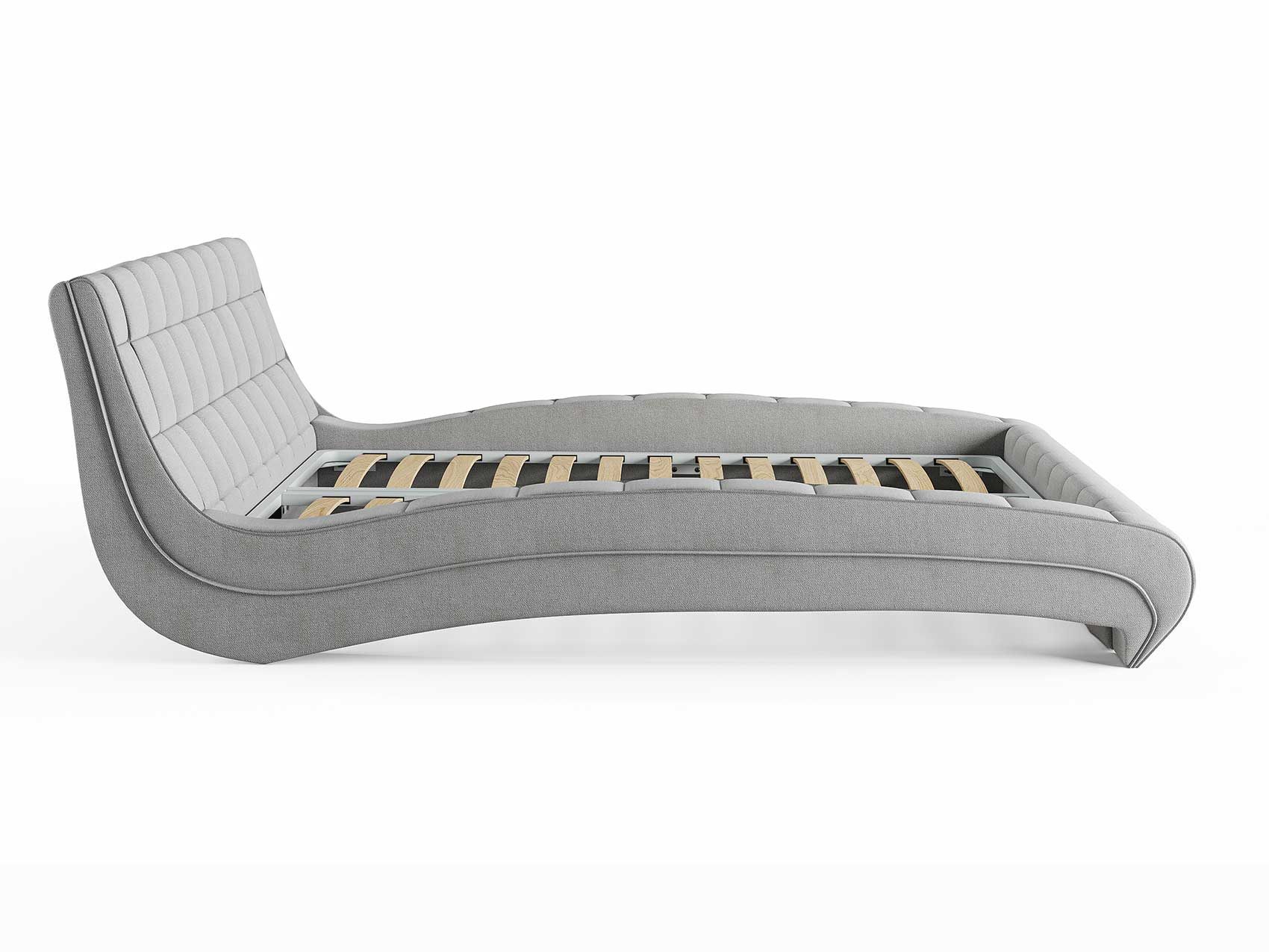 Кровать комплектуется металлическим основанием (без опор), которое имеет 13 рядов встроенных березовых ламелий на каждое спальное место, обеспечивая равномерное распределение нагрузки.