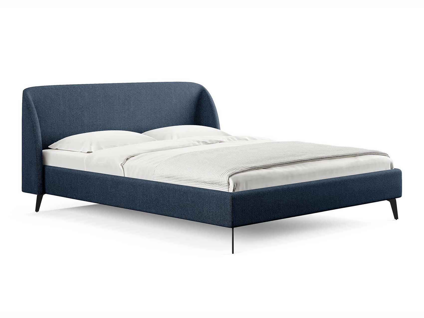 Кровать с закругленным изголовьем делает спальное место особенно уютным. Ее дизайн удачно подойдет для интерьеров в современном стиле, стиле минимализм и стиле mid-century модерн. Спинка кровати выполнена в основной ткани, благодаря этому ее можно установить в центре комнаты. Узкие царги и стильные металлические ножки делают кровать легкой и лаконичной. Кант на изголовье выступает в качестве декора, подчеркивает ее выразительность. Увеличенная прочность кровати достигается за счет металлического каркаса по периметру. Расстояние от пола до царг способствует легкой уборке под кроватью, в том числе роботом – пылесосом.
