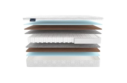 Идеальный вариант матраса средней жесткости, которую обеспечивают качественные наполнители. За правильное положение тела, грамотную нагрузку на позвоночник, спокойное дыхание и крепкие сны отвечают универсальная пена natural foam, латексированный кокос и независимый пружинный блок «Соты». Они создают не только ортопедический эффект, но и все условия, чтобы комфортно себя чувствовать спящему с любым весом.