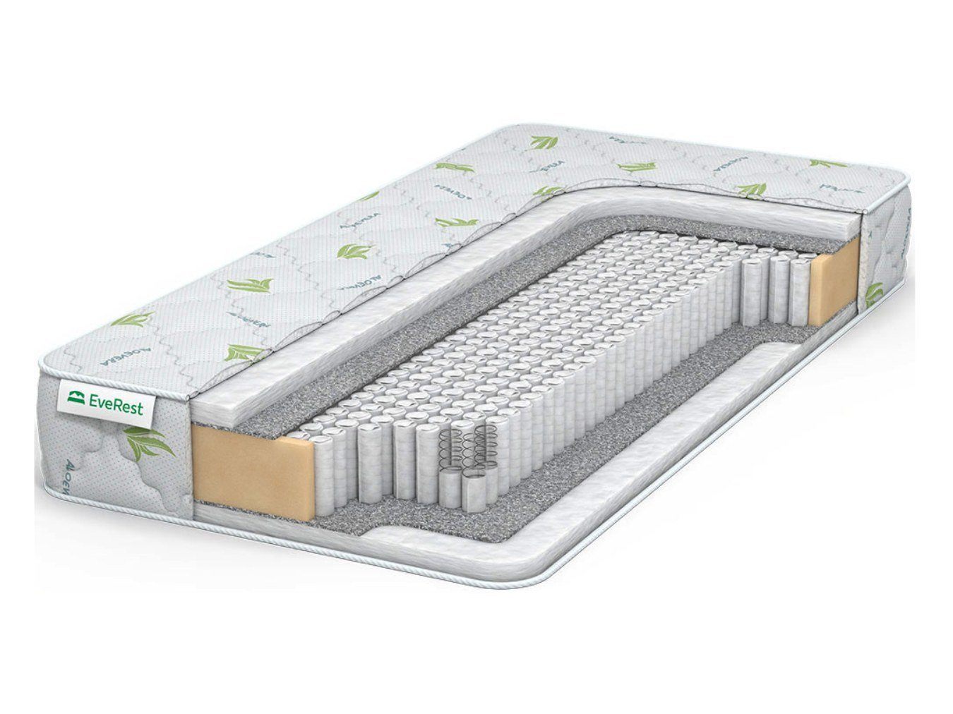 Покрытие на матрас изготавливается из хлопкового трикотажа. Ткань дополнительно проходит антибактериальную пропитку экстрактом «Алоэ Вера». Чехол имеет специальную мягкую стёжку по всем свои сторонам.
