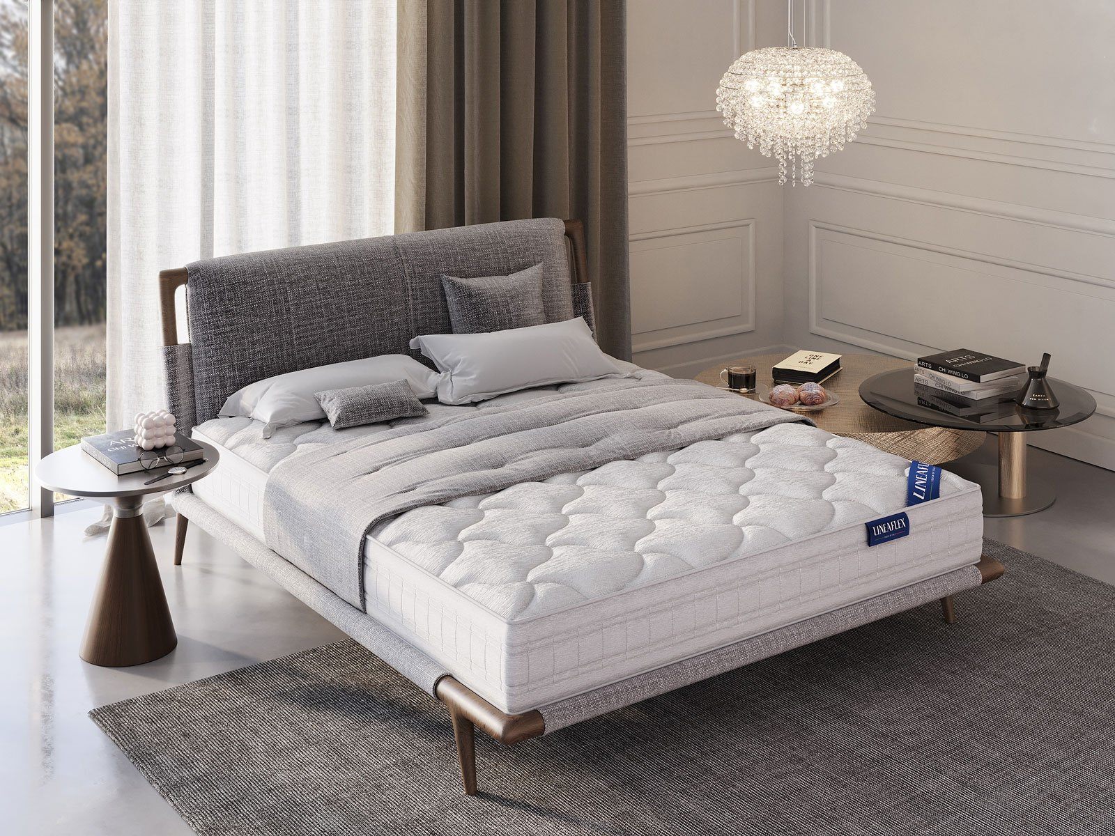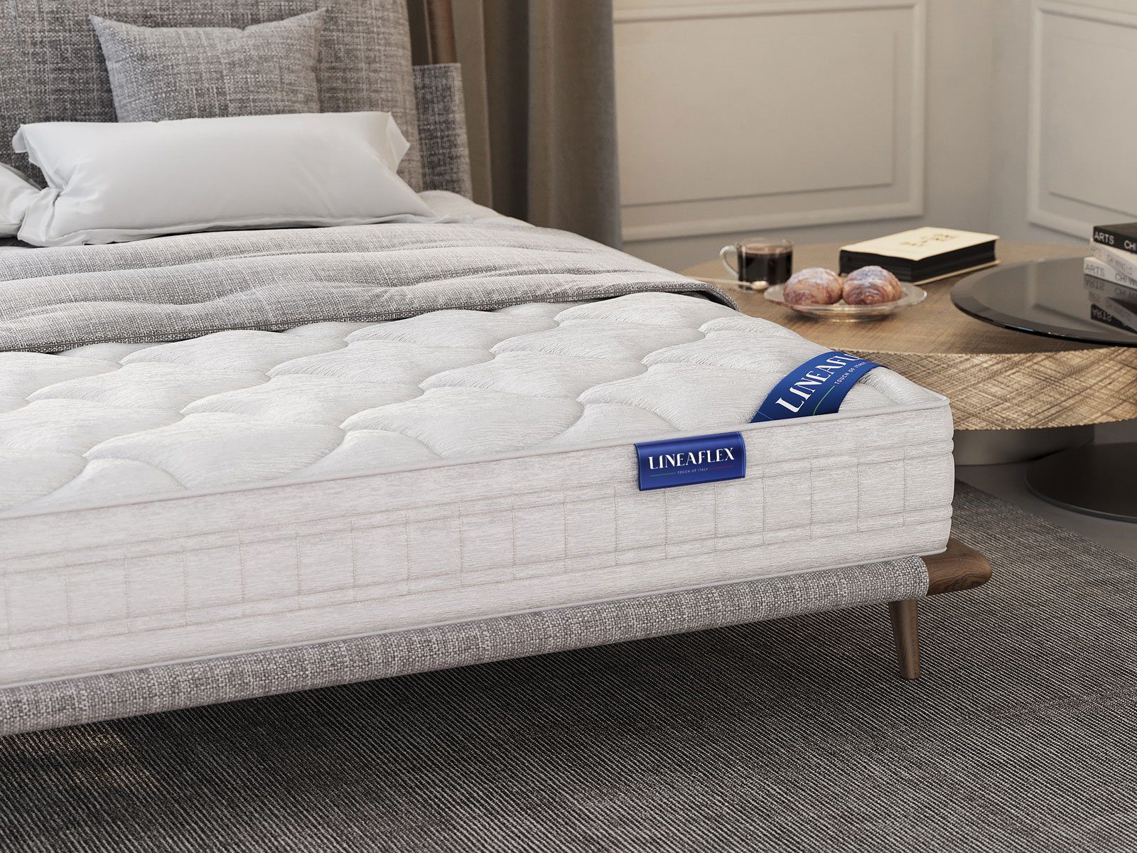 Матрас оснащён системой комфорта Antibatterico Lux. Трикотажное покрытие производства Италии изготовлено из объёмного бамбукового волокна. Изделие украшает объёмная стёжка по холлофайберу и пене ERGOFLEX.