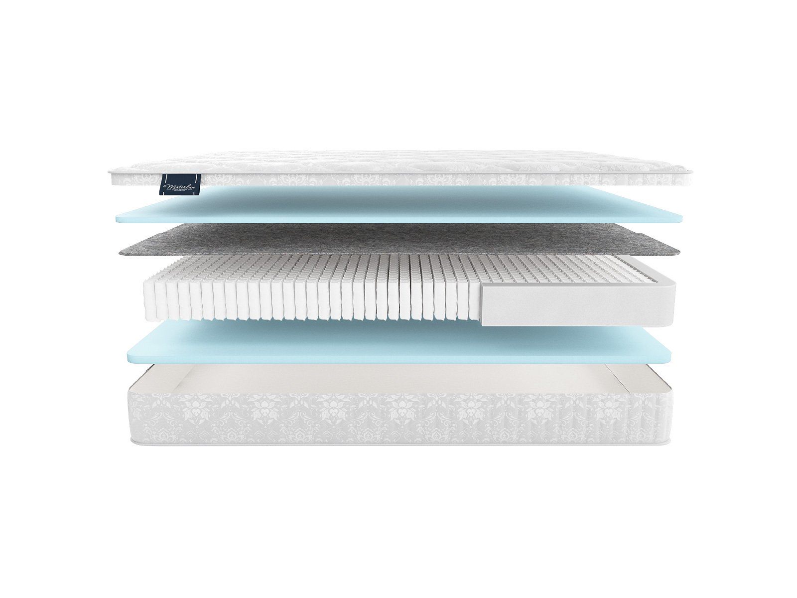 Матрас снабжен независимым пружинным блоком «Мультипакет» (1040 пружин на спальное место), который создает анатомический и ортопедический эффект.
