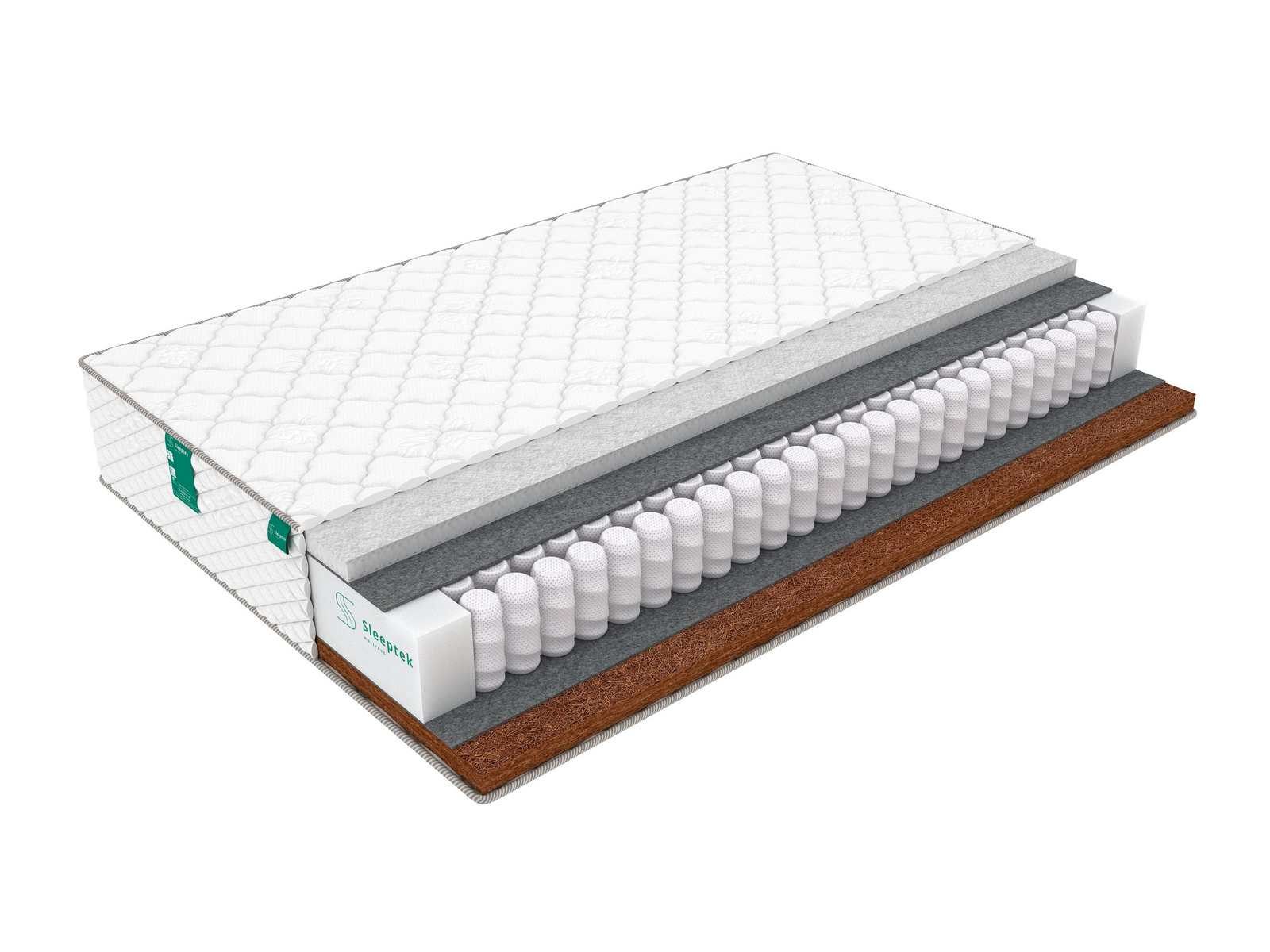 Ортопедический матрас Premier Strutto Cocos с различным уровнем жесткости сторон. Основой матраса является блок независимых пружин S500, где каждая пружина располагается в своем чехле и реагирует на нагрузку индивидуально. Такой блок оказывает позвоночнику полноценную поддержку и помогает равномерно распределять приложенное усилие. Блок пружин отделен от наполнителей слоями термовойлока,он защищает наполнители от контакта с пружинами и продлевает срок службы матраса.