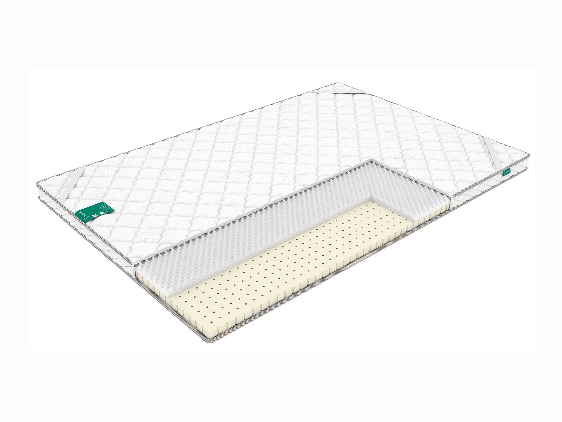 Спальная принадлежность обладает компактной высотой – 4 см и состоит из двух слоёв. Первым идёт натуральный латекс, а следом проложена рельефная ортопедическая пена. Переворачивая топпер, вы сможете менять характеристики спального места от мягко-анатомичному к массажному.