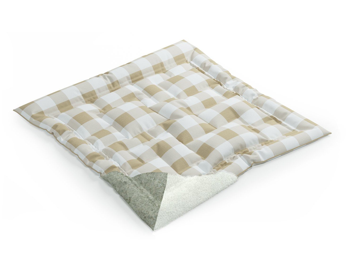 Дополнительный комфорт и натуральность одеялу добавляет хлопковая ткань в бежевую клетку. Она не только приятна на ощупь, но и абсолютно антиаллергенна. Благодаря очень плотному переплетению хлопка, ткань придаёт дополнительную мягкость и комфорт и подчеркивает единый внешний стиль компании.