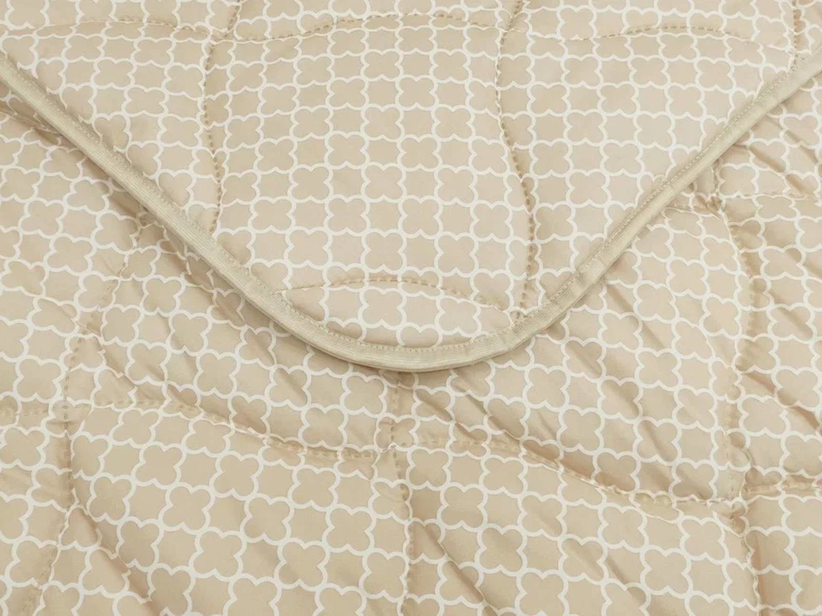 Чехол одеяла выполнен в спокойном бежевом оттенке с ненавязчивым геометрическим орнаментом. В его состав входят хлопок, который обладает хорошей воздухопроницаемостью и полиэстер, делающий ткань очень прочной и долговечной. Уникальная технология безниточного скрепления Ультрастептм не только надежно фиксирует наполнитель внутри чехла, но и добавляет изделию объем.