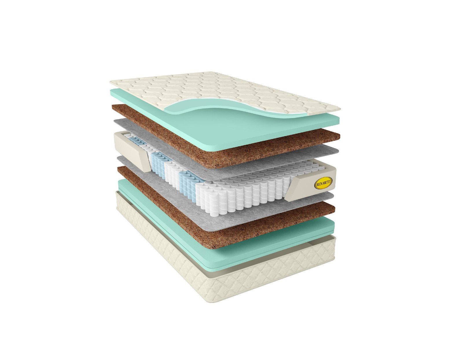 Наполнителями сверху и снизу от S1000 проложены кокосовая койра в тандеме с искусственным латексом. Койра хорошо продолжает работу пружин, делая ортопедические свойства матраса ярче. Латекс со своей стороны убирает излишнюю жёсткость и делает поверхности модели более мягкими и адаптивными.