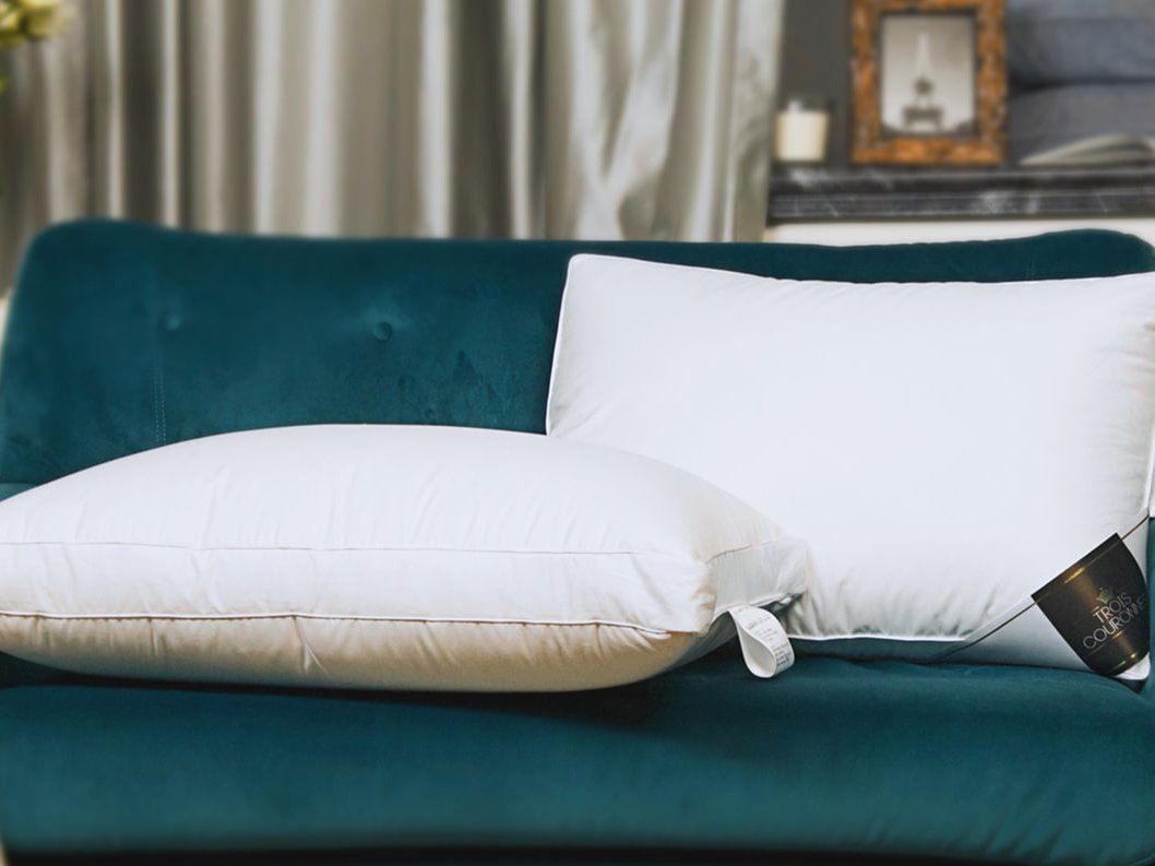 Жесткая и упругая трехкамерная подушка с пухом Мазурийского гуся обеспечивает ортопедическую поддержку головы.