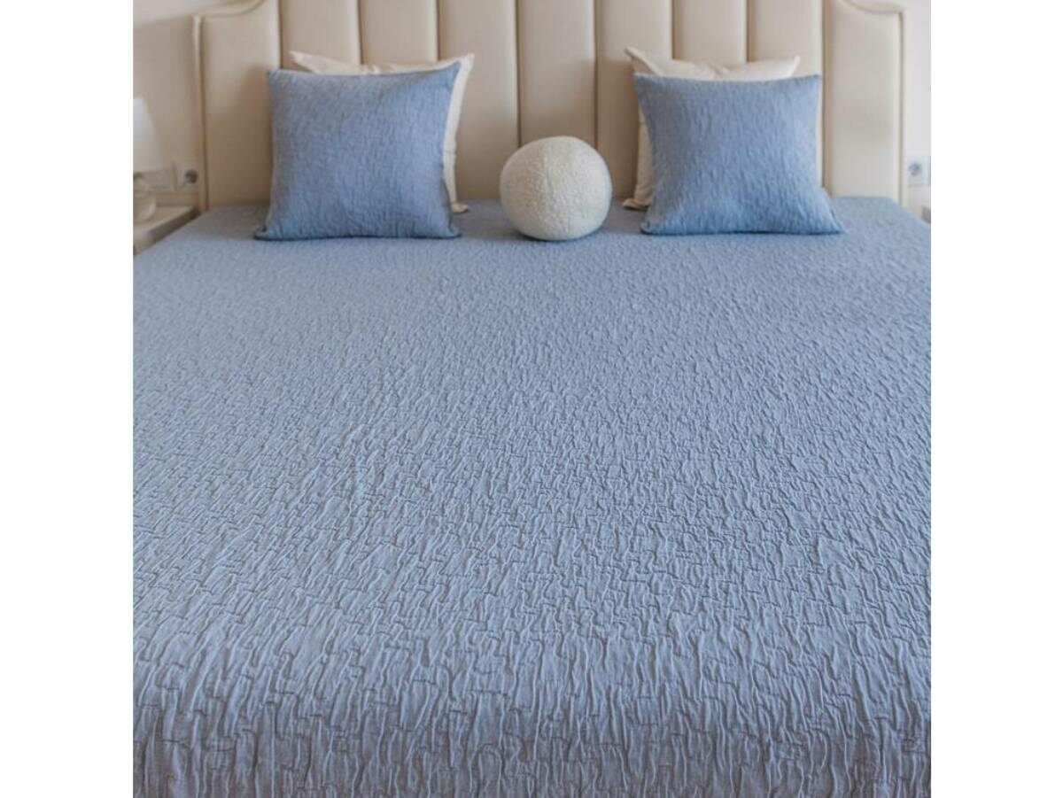Хлопковое практичное покрывало на кровать или диван – JAPANDY. Минималистичный стиль. Имеет 3D-фактуру в виде плывущих облаков. Такой эффект достигается благодаря высокой технологии ткацкого производства Португалии!