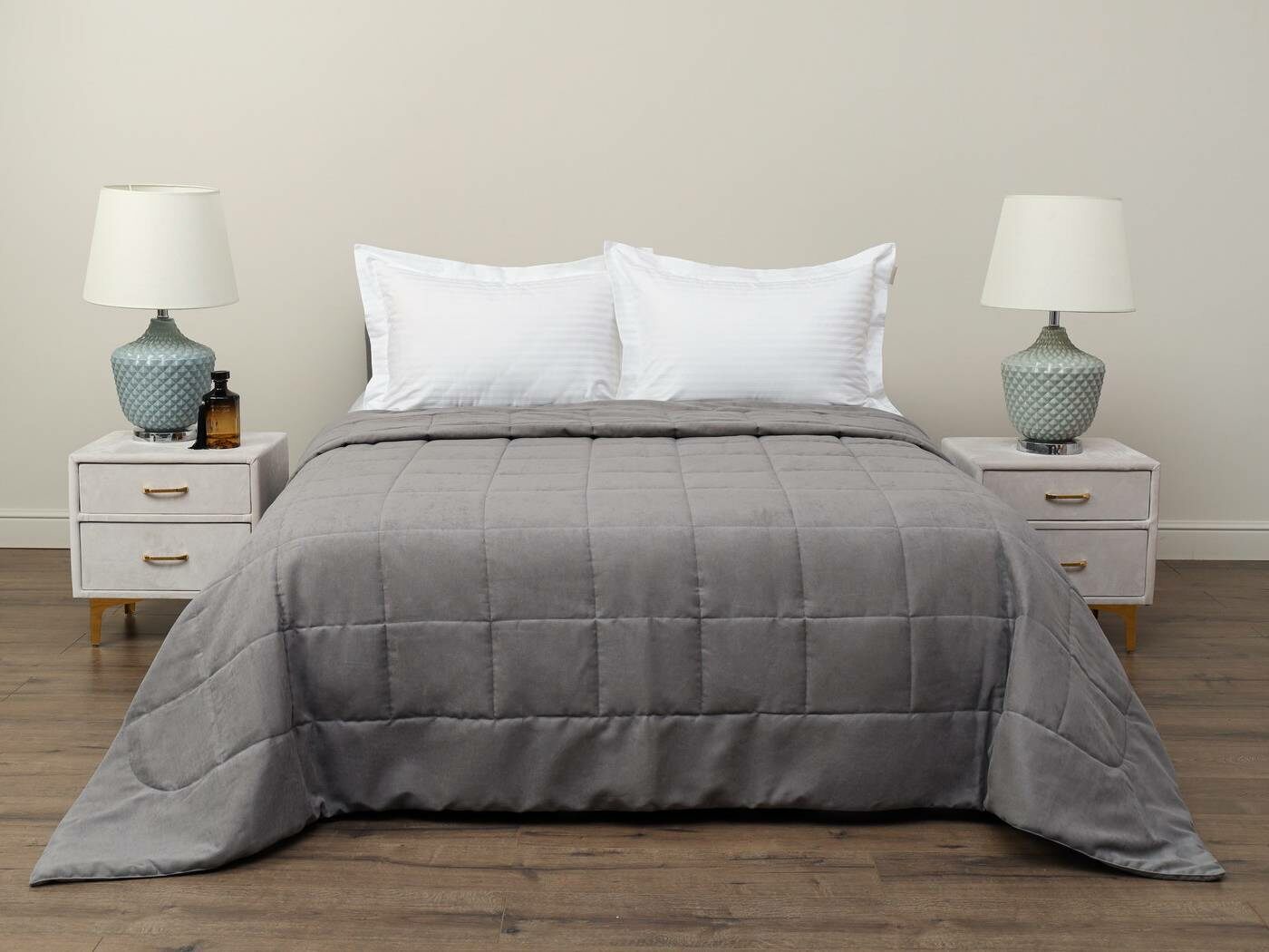 Ткань верха – бархатистый канвас. Канвас отлично себя зарекомендовал как износостойкий и плотный материал обеспечивающий мягкий противоскользящий эффект. Покрывала имеют классическую для канваса машинную стежку «квадрат». Плотная и мягкая фактура ткани канвас не оставляет зацепок, изнаночная сторона выполнена из матового и нежного тика. Такое покрывало украсит собою спальную или гостиную комнату, органично подчеркнет Ваш утонченный стиль.