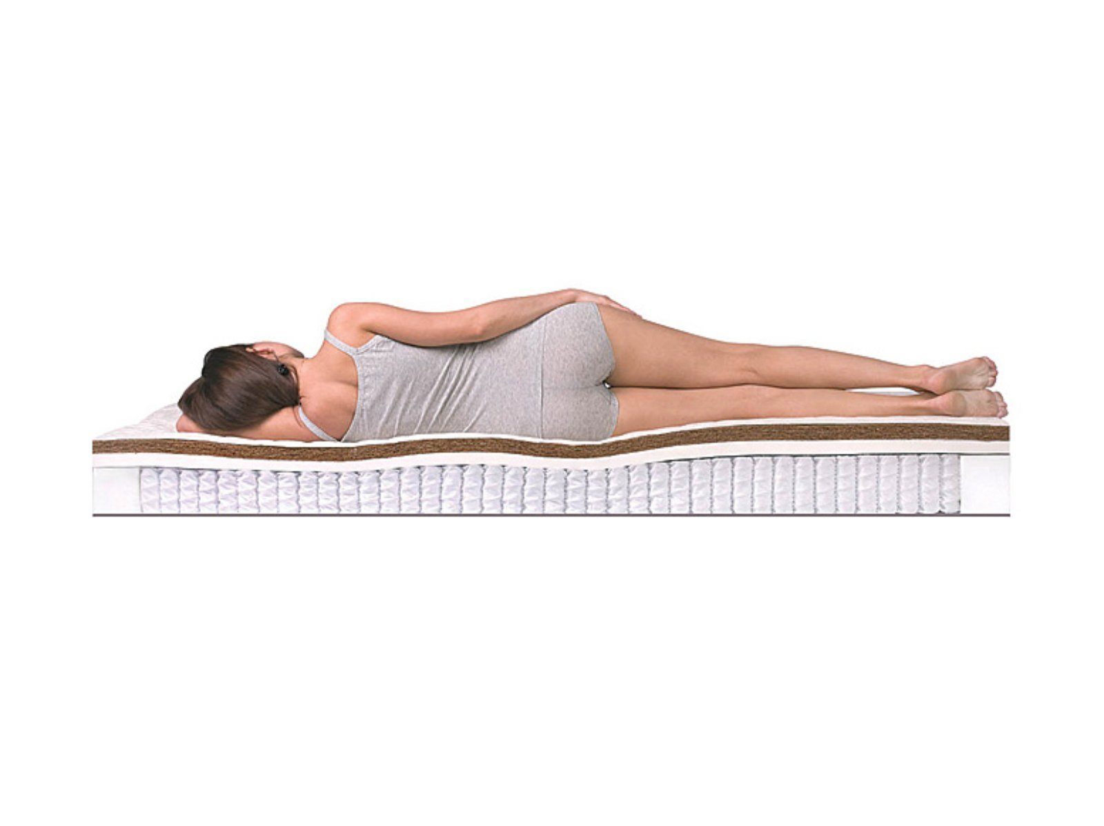 Матрас Prime Mix S1000 достаточно высокий (26 см) и выдерживает большие нагрузки (до 140 кг на спальное место). Модель сконструирована на пружинном модуле, в котором установлено 530 не соединенных между собой пружин, позволяющих равномерно распределять нагрузку по поверхности. В качестве наполнения используется по слою латексированной кокосовой койры и натурального латекса с обеих сторон, причем с одной стороны верхним слоем является койра, что придает ей жесткость выше средней, а с другой сверху располагается латекс - эта сторона имеет среднюю жесткость. Матрас Prime Mix S1000 оснащен чехлом из хлопкового жаккарда, простеганного на антиаллергенном холконе 250 гр./м2, в который можно бесплатно вшить смотровую молнию.