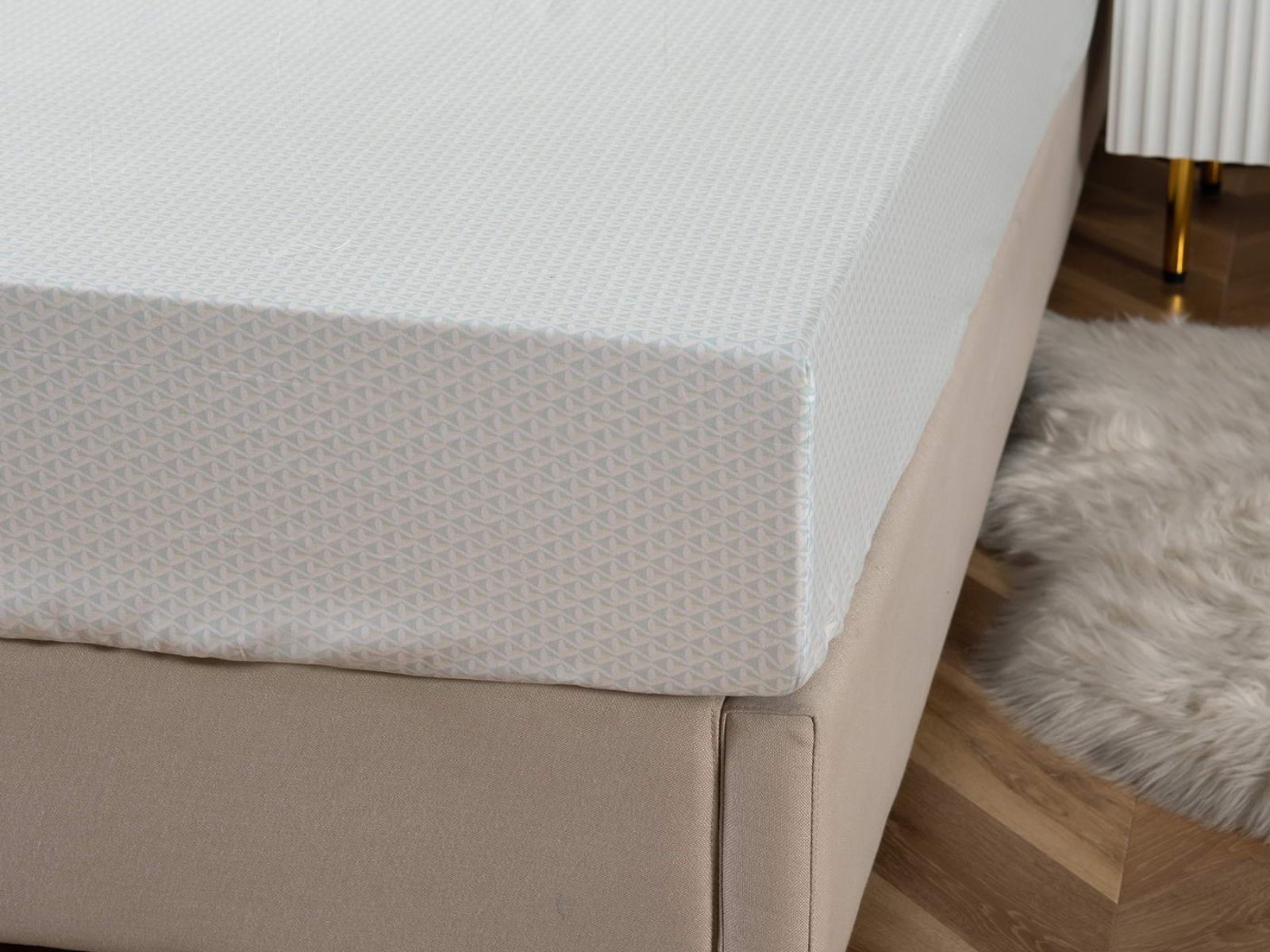 Удобная и практичная простынь на резинке не будет топорщиться и сбиваться во сне. Подойдет для матрасов высотой до 30 см.