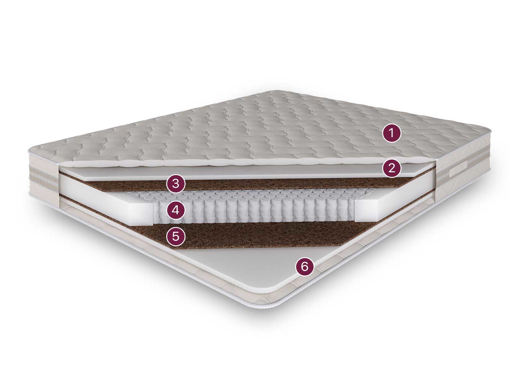 Салтан Эко - недорогой матрас средней жесткости с бюджетными наполнителями. Кокосовая койра в сочетании с блоком независимых пружин придаёт матрасу среднюю жёсткость, а ортопена высокой плотности - мягкость и упругость.