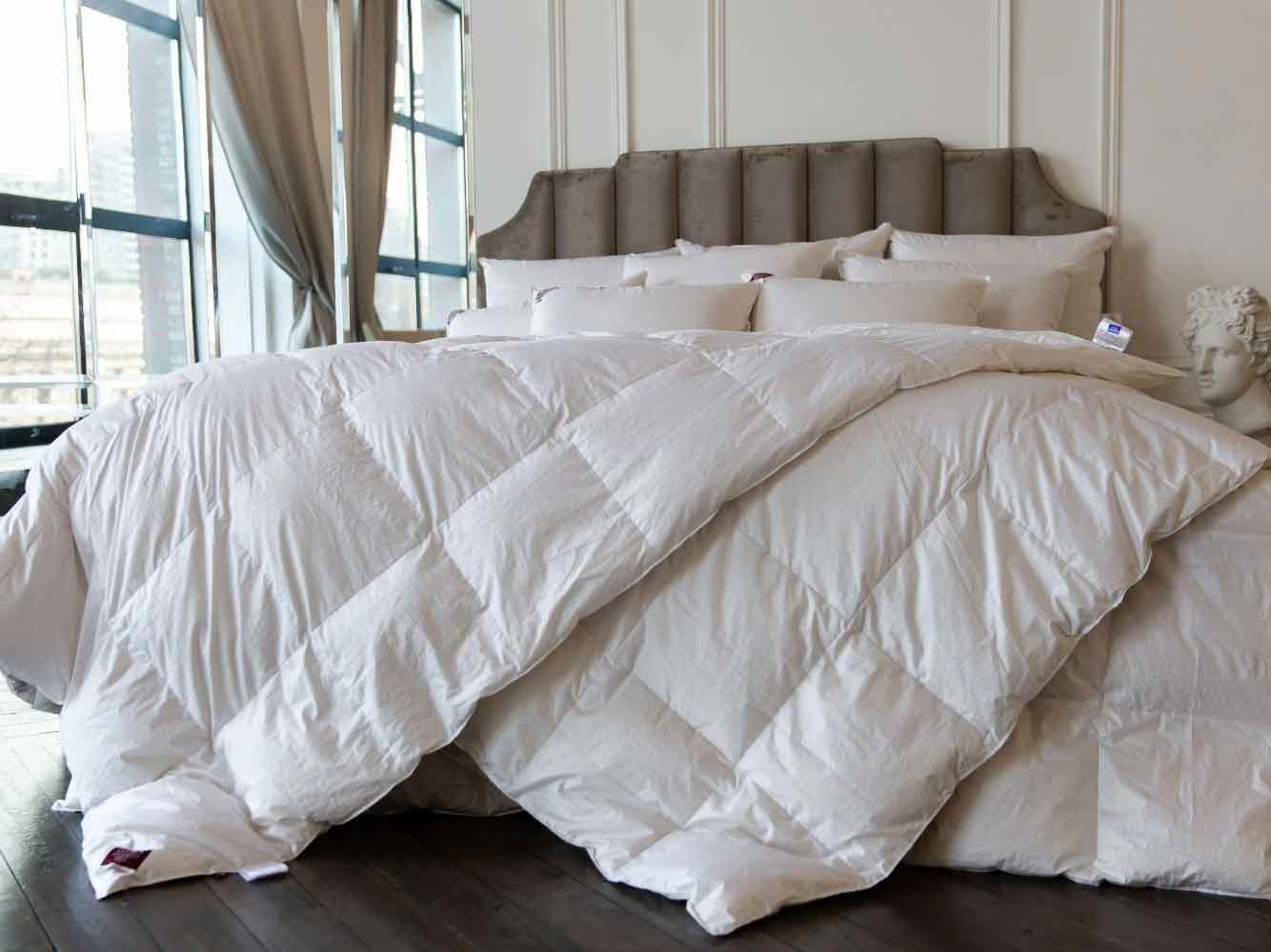 Наполнитель: 100% новый, гусиный белый пух высшего качества, отсортированный вручную, с коэффициентом упругости (Fill Power) не менее 800ед.