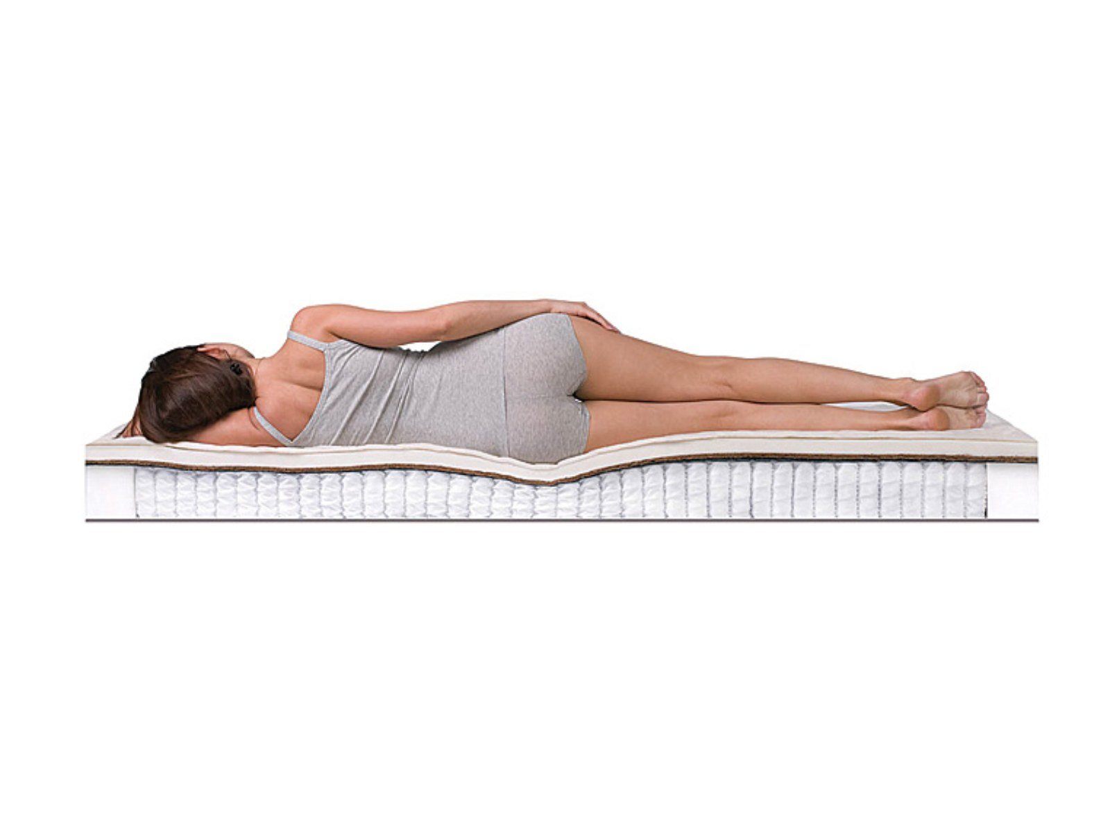 Матрас SleepDream Hard S1000, высота которого 22 см, выдерживает достаточно высокие нагрузки - до 140 кг на спальное место. Один из плюсов данной модели в том, что есть возможность выбрать наиболее удобную сторону для сна с учетом своих предпочтений, так как они имеют разную жесткость. Одна из сторон жесткая за счет толстого слоя кокосовой койры. В другой сочетаются койра и натуральный латекс - эта сторона имеет среднюю жесткость. Матрас изготовлен на основе прочного современного пружинного блока (500 пружин на квадратный метр) с отличными ортопедическими свойствами. Чехол модели SleepDream Hard S1000 сшит из хлопкового жаккарда, простеган и наполнен объемным антиаллергенным холконом. В него по заказу можно бесплатно вшить смотровую молнию.